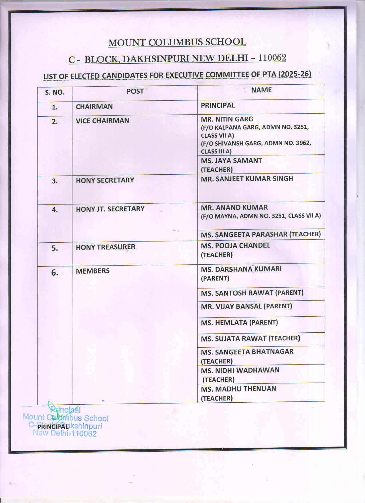 | LIST OF ELECTED CANDIDATES FOR PTA (2024-26) |